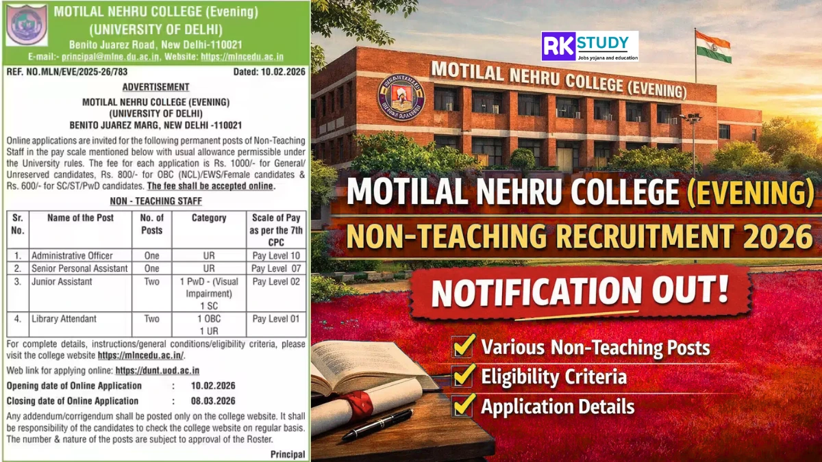 यदि आप दिल्ली विश्वविद्यालय से जुड़कर सरकारी नौकरी पाना चाहते हैं, तो University of Delhi के अंतर्गत आने वाला Motilal Nehru College आपके लिए शानदार अवसर लेकर आया है। वर्ष 2026 में मोतीलाल नेहरू कॉलेज विभिन्न शिक्षकीय और गैर-शिक्षकीय पदों पर भर्ती की प्रक्रिया शुरू करने जा रहा है।