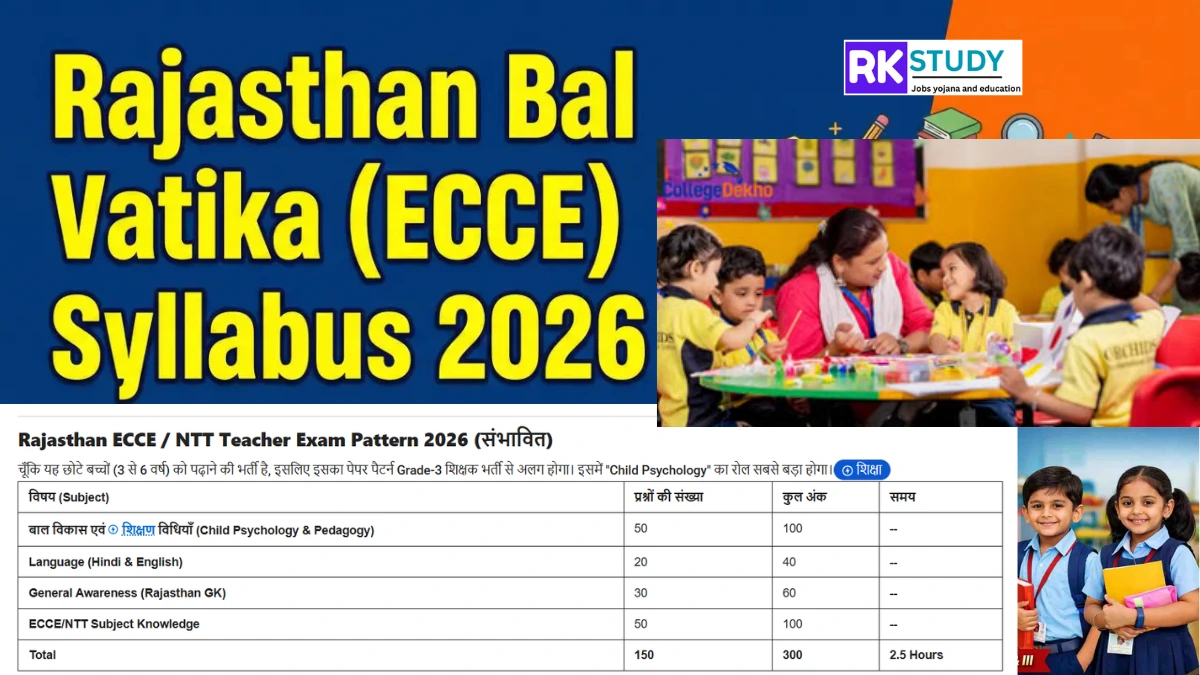 राजस्थान में प्री-प्राइमरी और नर्सरी स्तर के शिक्षक बनने का सपना देख रहे उम्मीदवारों के लिए ECCE (Early Childhood Care and Education) और NTT (Nursery Teacher Training) प्रमाणपत्र बेहद महत्वपूर्ण हैं। राजस्थान सरकार के विभिन्न विभाग (जैसे शिक्षा विभाग, महिला एवं बाल विकास विभाग, और निजी स्कूल) इन योग्यताओं वाले शिक्षकों की भर्ती करते हैं। इस लेख में हम राजस्थान ECCE NTT शिक्षक सिलेबस और परीक्षा पैटर्न को विस्तार से, तालिकाओं और अक्सर पूछे जाने वाले प्रश्नों (FAQ) के साथ प्रस्तुत कर रहे हैं। आप इस लेख के अंत में सिलेबस की PDF डाउनलोड करने का तरीका भी जानेंगे।