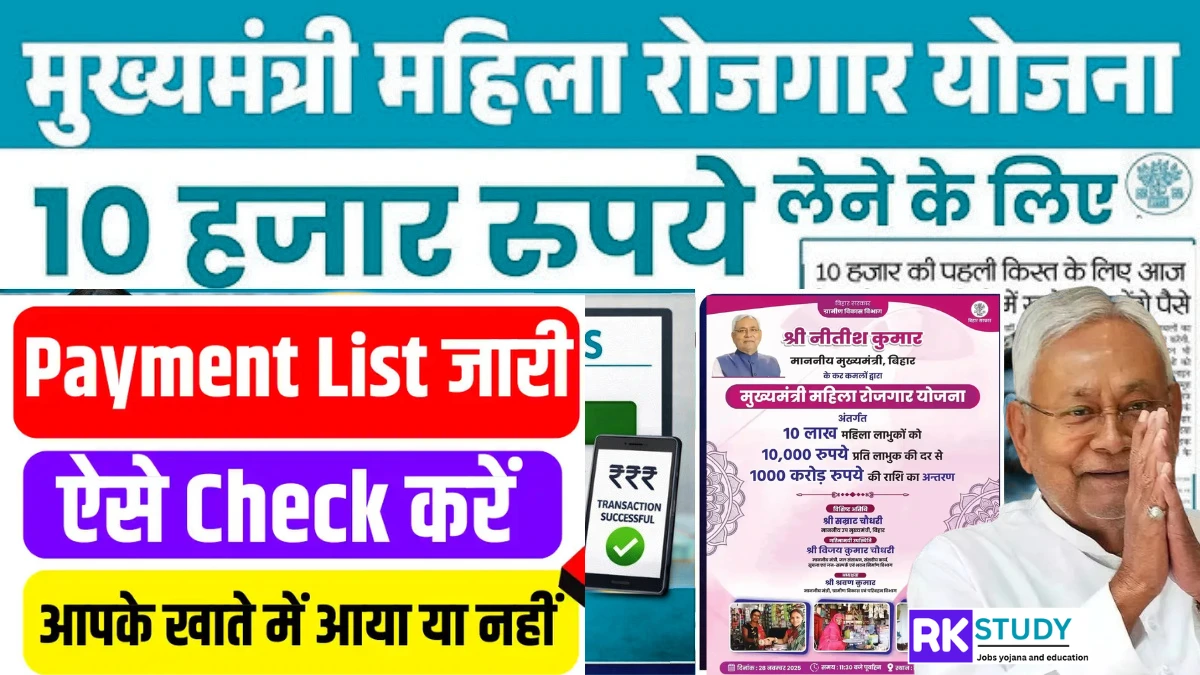 Mahila Rojgar Yojana Payment List 2026 | 10,000 Mahila Rojgar Yojana List | mahila rojgar yojana ka paisa kab aaega
