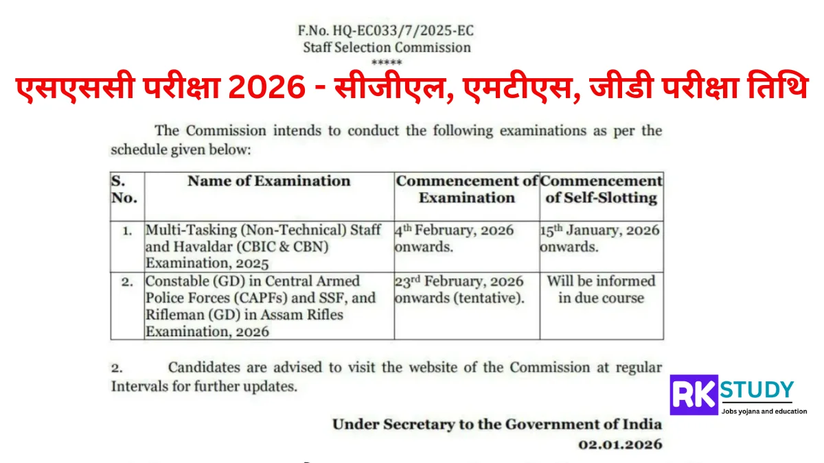 स्टाफ सेलेक्शन कमीशन (SSC) ने नए साल 2026 की शुरुआत में ही कई प्रमुख भर्ती परीक्षाओं का विस्तृत परीक्षा कार्यक्रम जारी कर दिया है। इससे CGL टियर-2, MTS (हवलदार) और GD कांस्टेबल जैसी परीक्षाओं में शामिल होने वाले लाखों उम्मीदवारों को अपनी तैयारी की रणनीति तय करने में मदद मिलेगी। ये सभी परीक्षाएं आने वाले जनवरी और फरवरी महीने में आयोजित की जाएंगी।